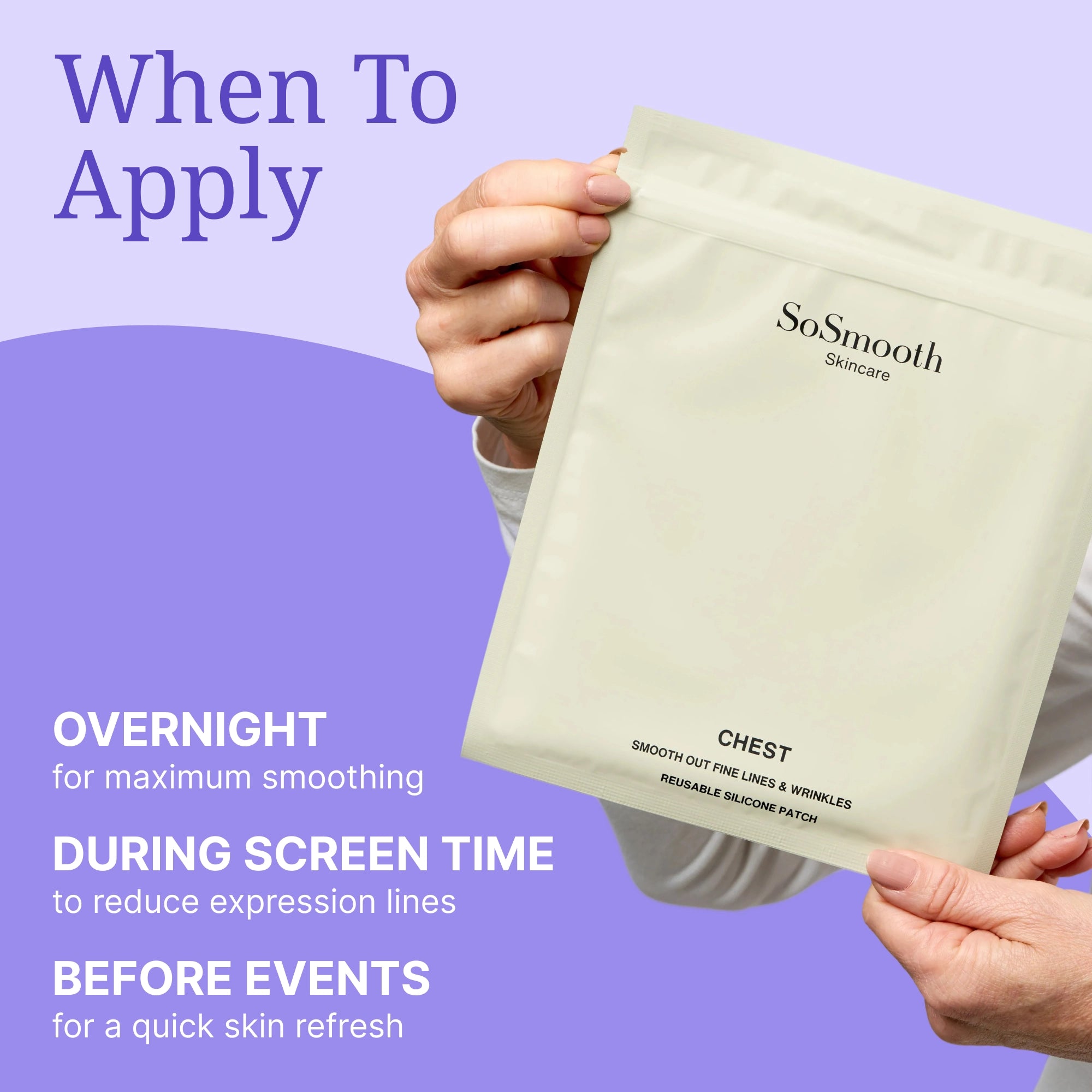 SoSmooth™ patches create a balanced microclimate that deeply hydrates and visibly smooths wrinkles. The occlusive barrier locks in moisture, plumping fine lines, while gentle compression softens existing wrinkles and helps prevent new ones. Enjoy a non-invasive path to smoother, youthful-looking skin.